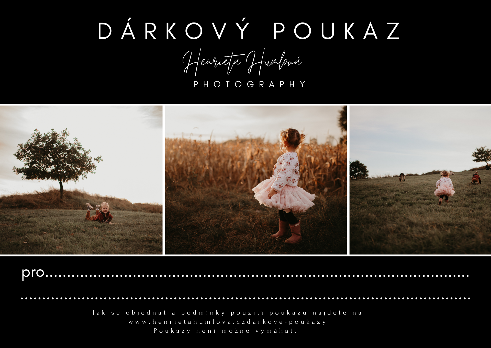 Objednání: Termín focení si prosím rezervujte s dostatečným předstihem. Při objednávce uveďte, že vlastníte dárkový poukaz a sdělte mi jeho číslo nebo hodnotu.